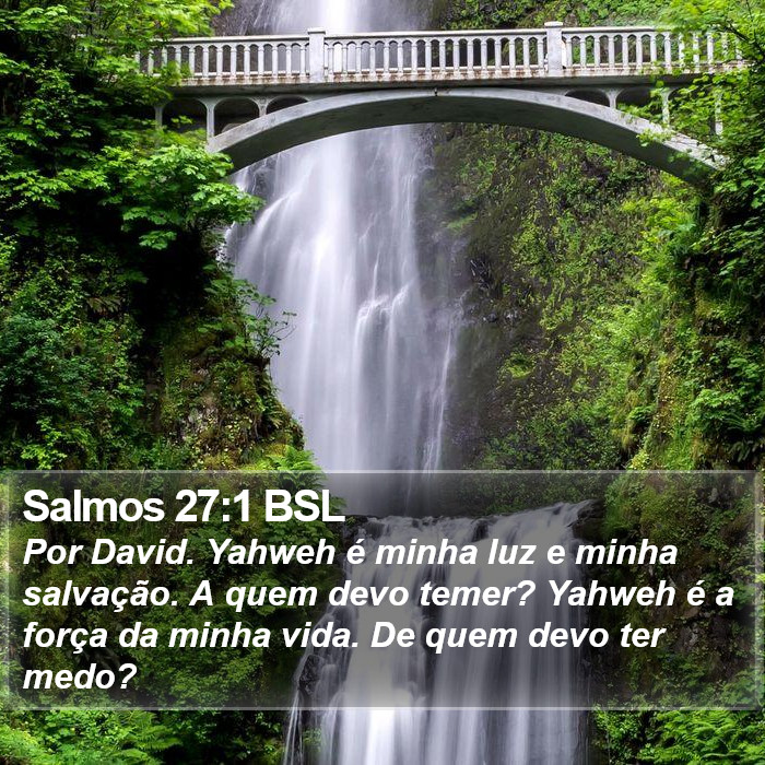 "O Senhor é a minha luz e a minha salvação; de quem terei medo? O Senhor é a fortaleza da minha vida; a quem temerei?"