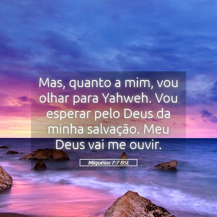 "Eu, porém, olharei para o Senhor; esperarei no Deus da minha salvação; o meu Deus me ouvirá." (Miquéias 7:7)
