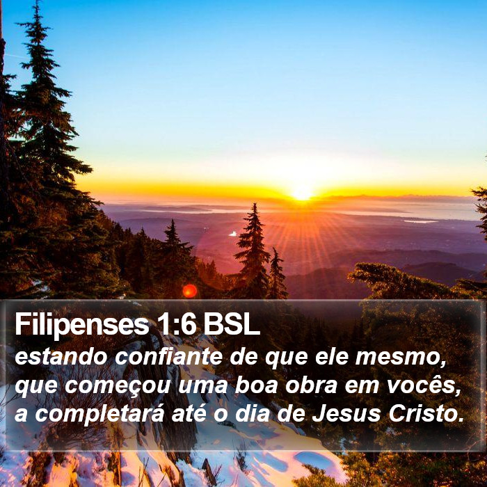 "Tendo por certo isto mesmo: que aquele que começou em vocês a boa obra a aperfeiçoará até o dia de Cristo Jesus."