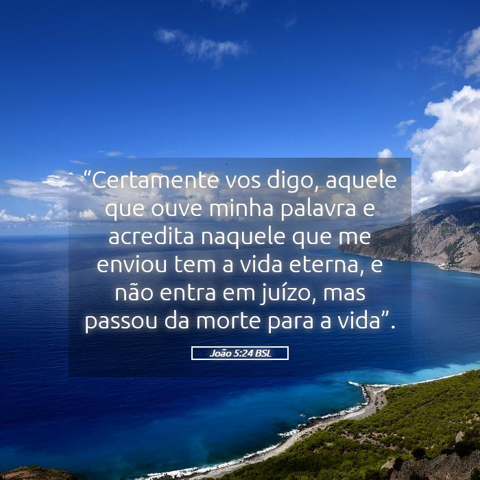 João 5:24 – "Em verdade, em verdade vos digo: quem ouve a minha palavra e crê naquele que me enviou tem a vida eterna e não entra em juízo, mas já passou da morte para a vida."