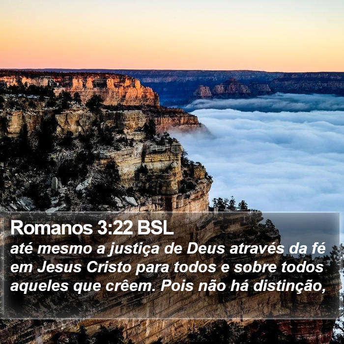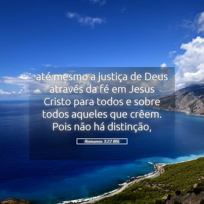 Romanos 3:22 – "Isto é, a justiça de Deus mediante a fé em Jesus Cristo para todos e sobre todos os que creem; porque não há distinção;"