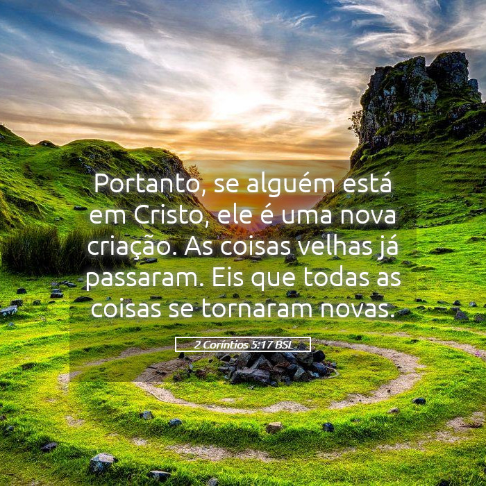 2 Coríntios 5:17 – "Portanto, se alguém está em Cristo, é nova criatura; as coisas antigas já passaram; eis que tudo se fez novo."