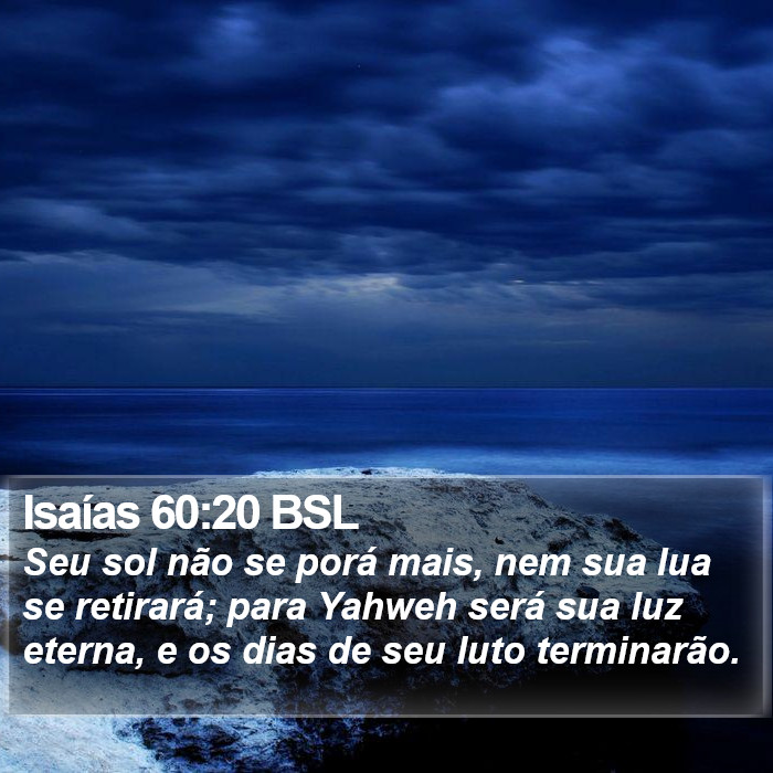 “... o SENHOR será para ti uma luz eterna.” (Isaías 60:20, BSL)