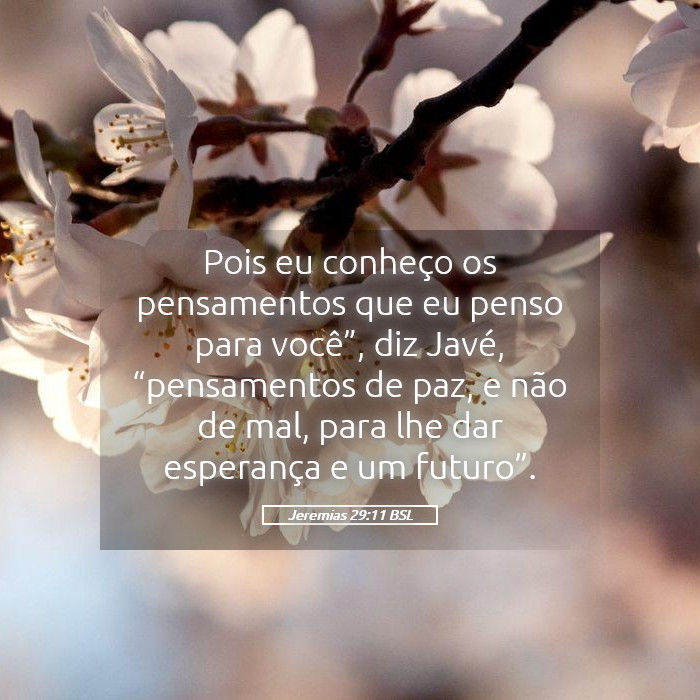 “Porque eu bem sei os planos que estou planejando para vocês, diz o Senhor, planos de paz e não de mal, para dar a vocês um futuro e uma esperança.”