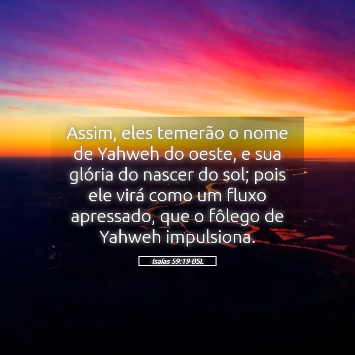Isaías 59:19 descreve uma promessa poderosa: quando o inimigo (Satanás, o pecado ou oposição espiritual) vier como uma corrente de águas, Deus não deixa Seu povo indefeso.