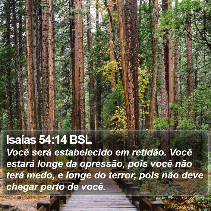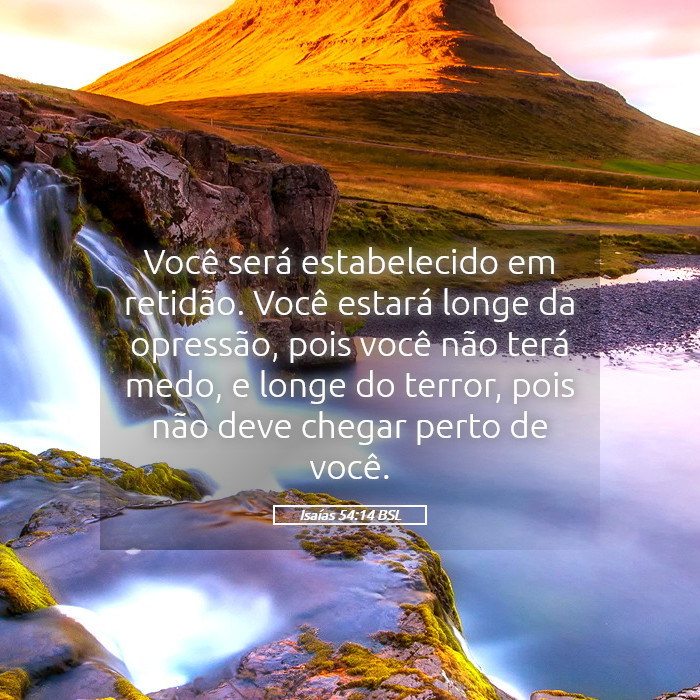 "Você será estabelecido na justiça; estará longe da opressão, pois não temerá, e também estará longe do terror, pois ele não se aproximará de você."