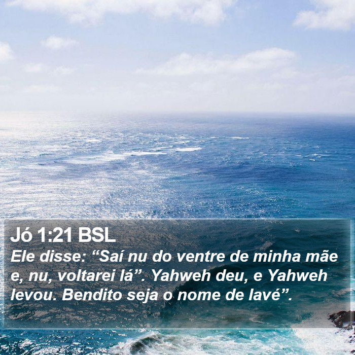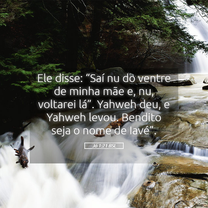 "E disse: Nu saí do ventre da minha mãe, e nu voltarei para lá; o Senhor deu, e o Senhor tirou; bendito seja o nome do Senhor."
